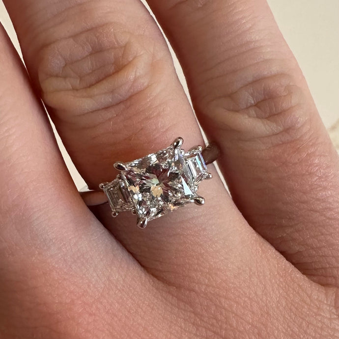 Platinum Two Carat Princess Cut & Baguette Lab Diamond Ring - Product Code - LB14