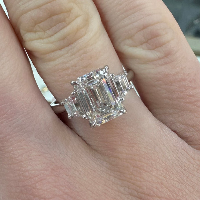Platinum 3 Carat Lab Diamond Emerald Cut Ring - Product Code - LB31