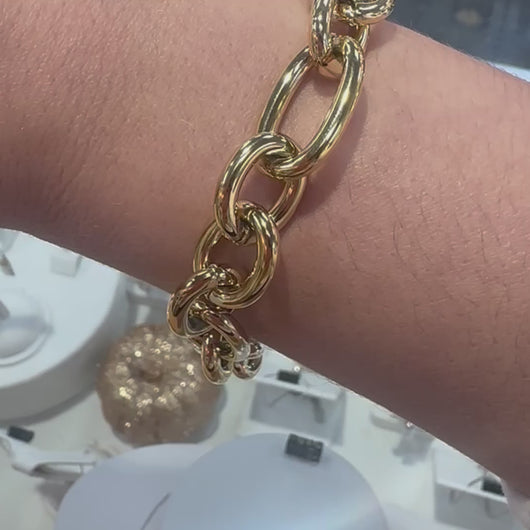 Beautiful Steel & gold plate statement open link adjustable bracelet