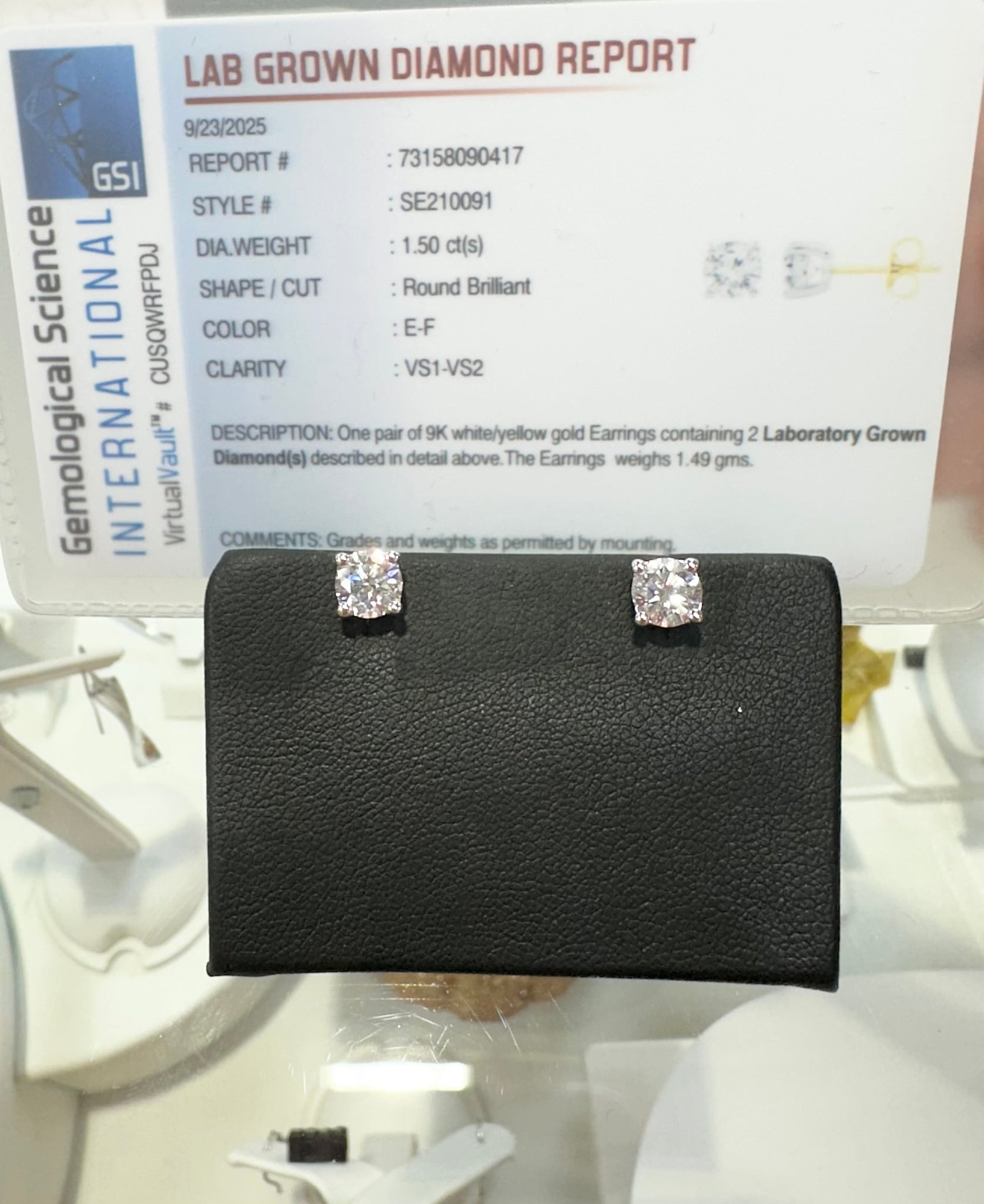 Classic everyday lab diamond earrings with 9ct white gold stem and butterfly fittings.